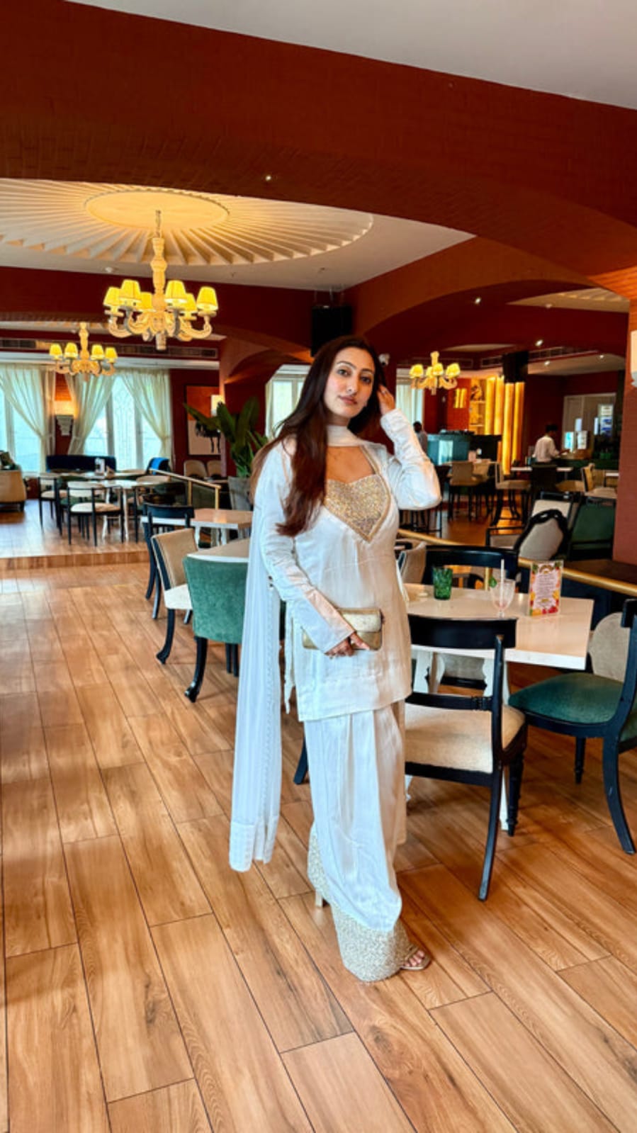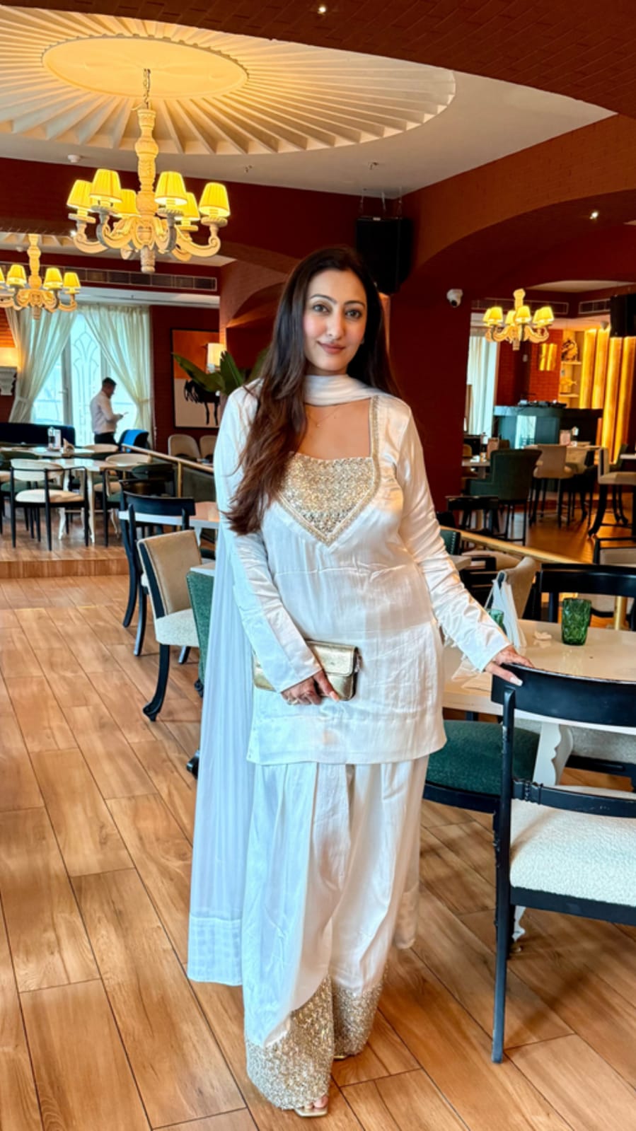 Exquisite pure cotton shirt with intricate applique patch work, paired with stylish Farshi salwar and delicate chiffon dupatta, perfect for a chic and comfortable look.