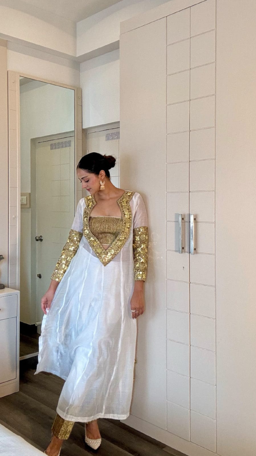 Elegant pure Upada silk applique work designer shirt paired with trendy Farshi applique work Upada silk salwar and soft organza applique work dupatta, perfect for special occasions.